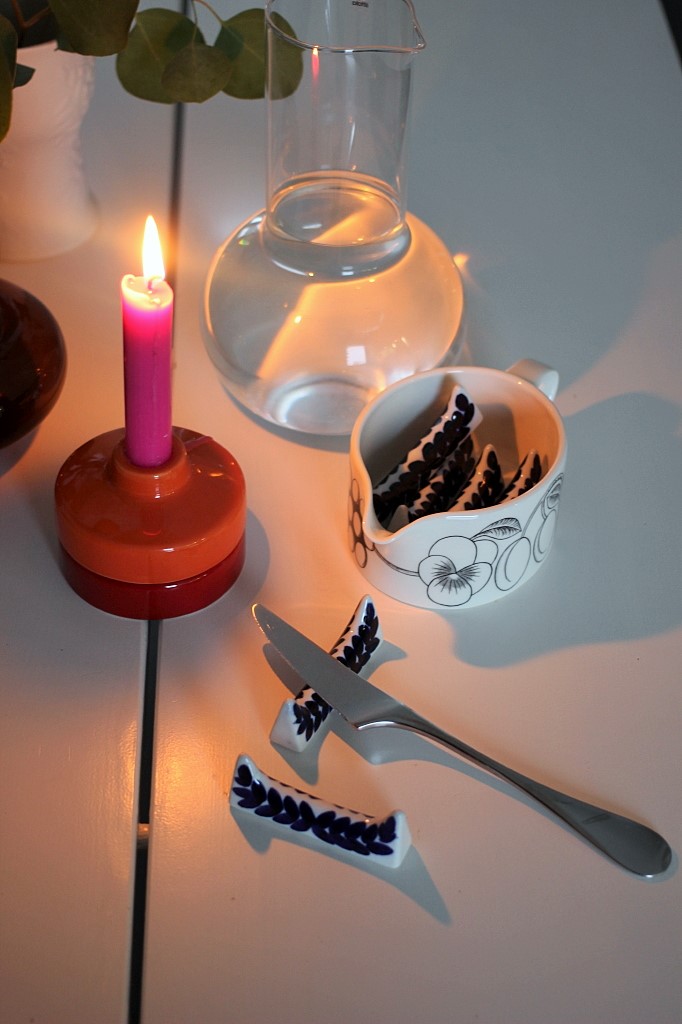 Täältä voi katsoa Vihreä talon Annikan Arabian pidikeet ja vilkaise myös kalafiguuri ja vielä Kööki malli täältä. Ja nyt innostuit tällaisista kattauksen lisäosista ja jos ei kirpparilla tärppää, niin Iittalalle on tulossa Taika Sato -syömäpuikkopidikkeet vuoden alussa myyntiin.
